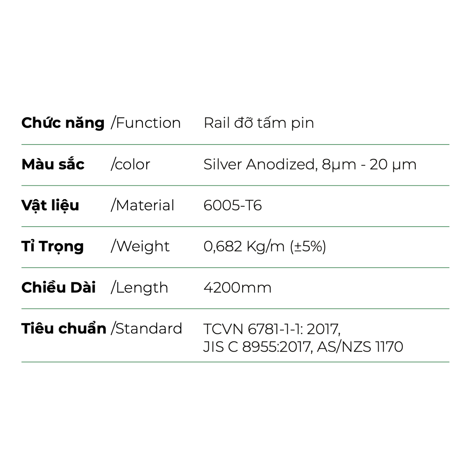 • Chức năng: Ray nhôm đỡ & cố định tấm pin năng lượng mặt trời.
